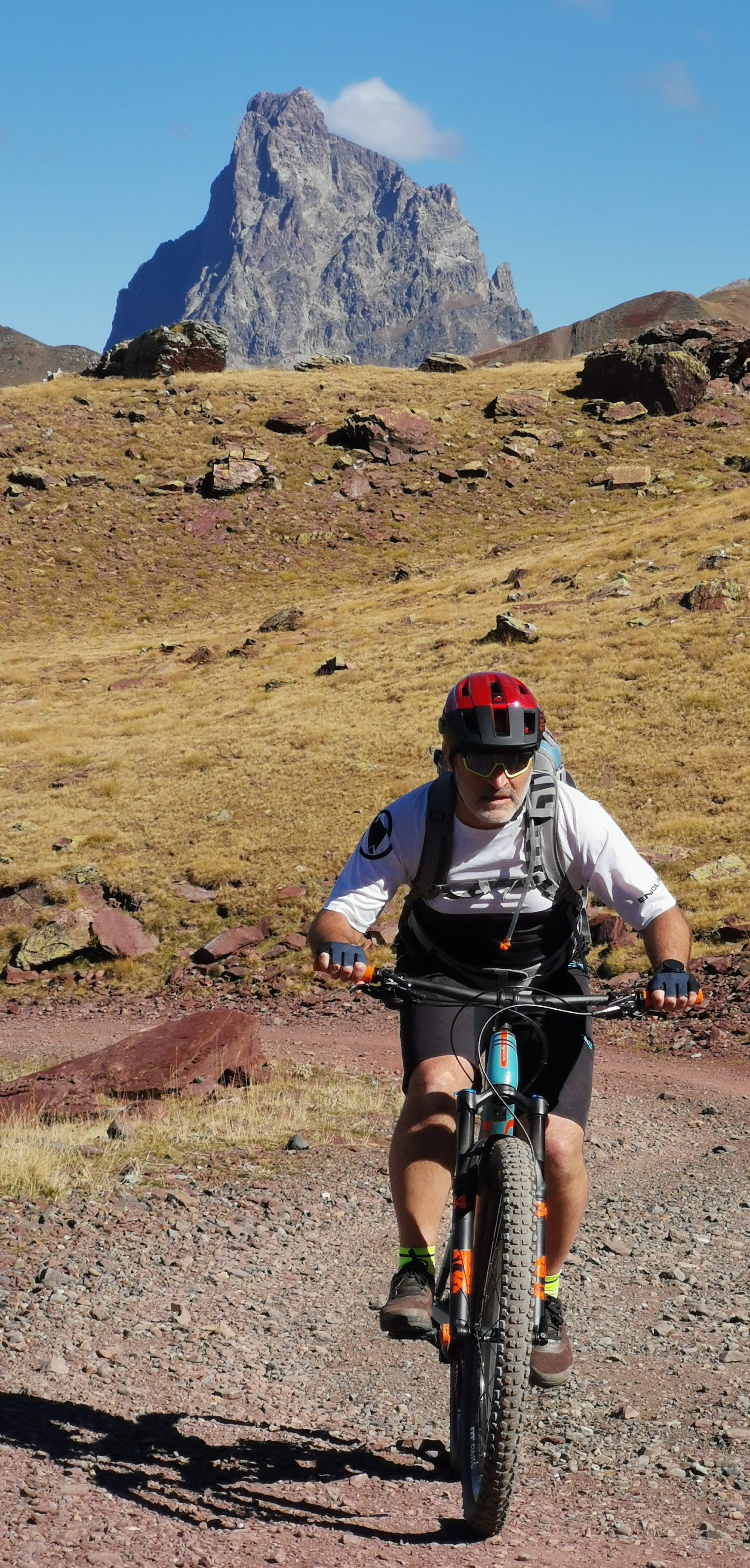 - Sur la première moitié les montées et descentes sont rocailleuses et dur à passer sans poussage. J'aurais côté la difficulté technique en orange