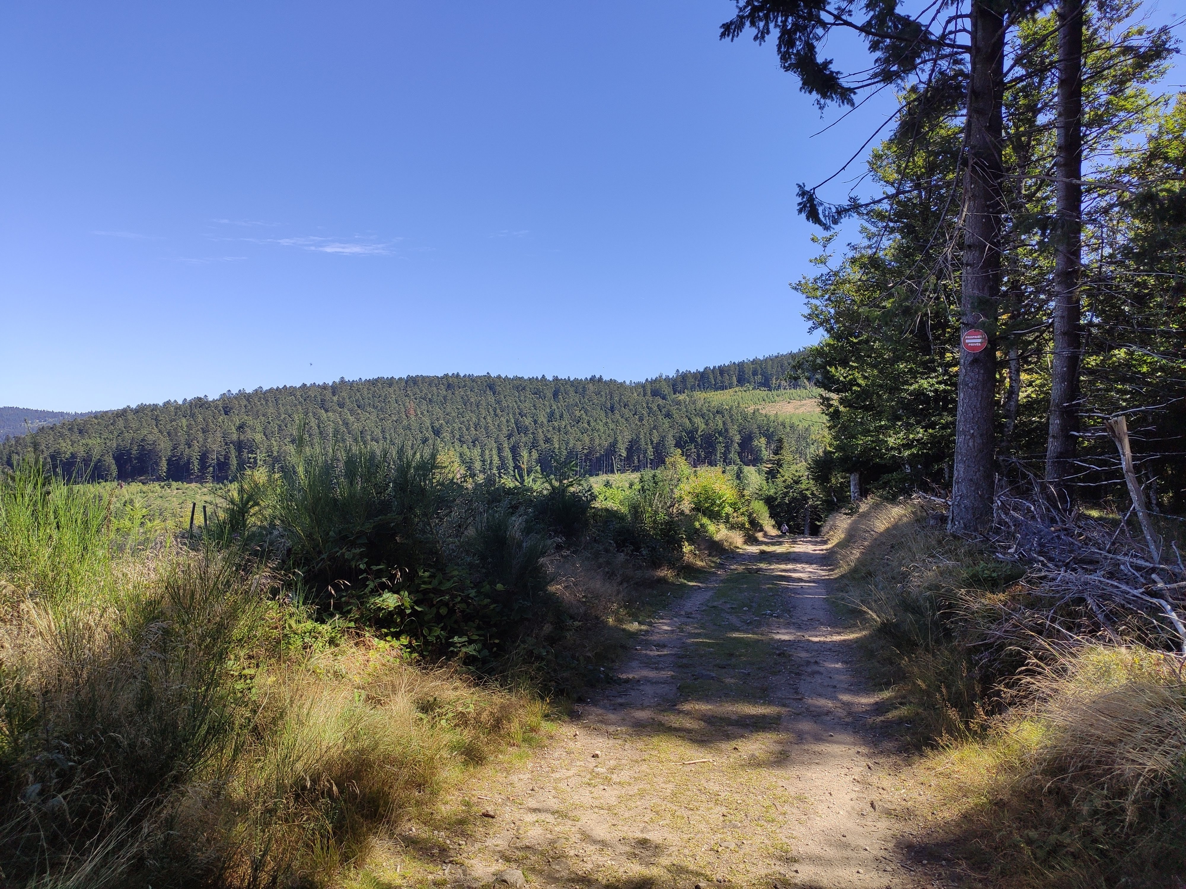 Au Km 40.6 de la trace, nous arrivons sur une route avec des panneaux "Propriété privée", "défense d'entrer", "interdit"… au moins 5 ou 6 panneaux à l'entrée de la route.