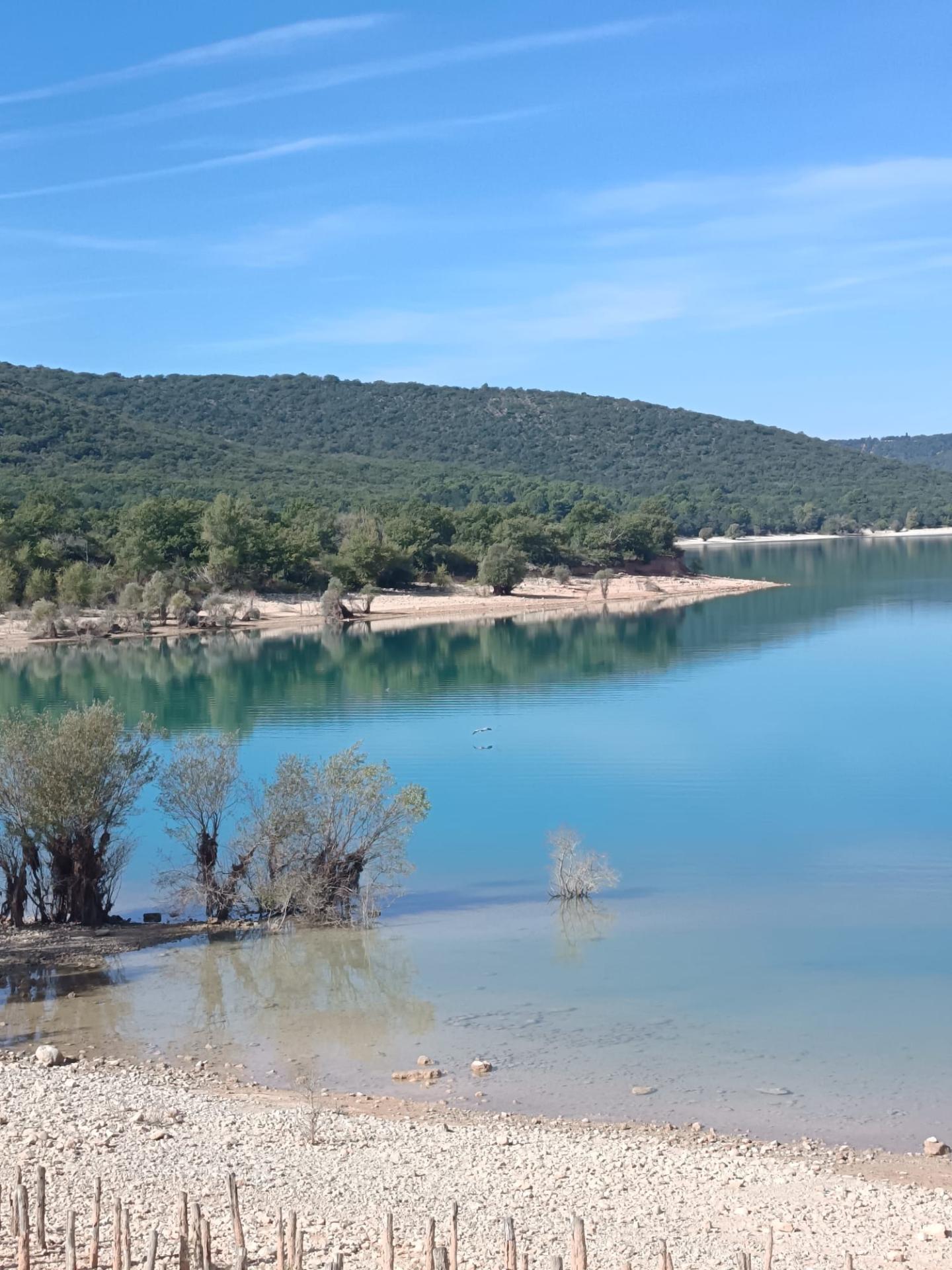 Un défi, faire le tour du lac sans emprunter la route (ou presque). Départ en montant à la déchetterie. Longue descente piégeuse avec des changements de terrain. Arrivé en bas, nous croisons la route pour nous diriger vers le centre équestre mais nous prenons à droite un single qui nous mène au bord de l'eau. Nous remontons à côté de la route jusqu'à l'entrée de Bauduen et attaquons une rude montée (départ goudronné). Au km 16, deuxième descente, un peu technique, pour retrouver le bord du lac à proximité des Salles. Nous longeons maintenant le lac par divers singles jusqu'au pont de Galetas. Juste après le pont, nous retrouvons un single au bout du parking.