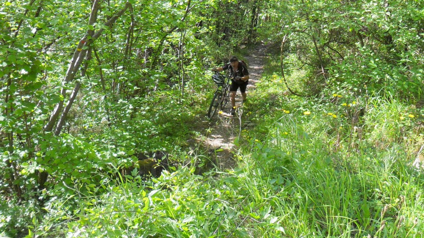 Praticabilité = moyenne à difficile, croisement difficile, largeur limité à 1 VTT.