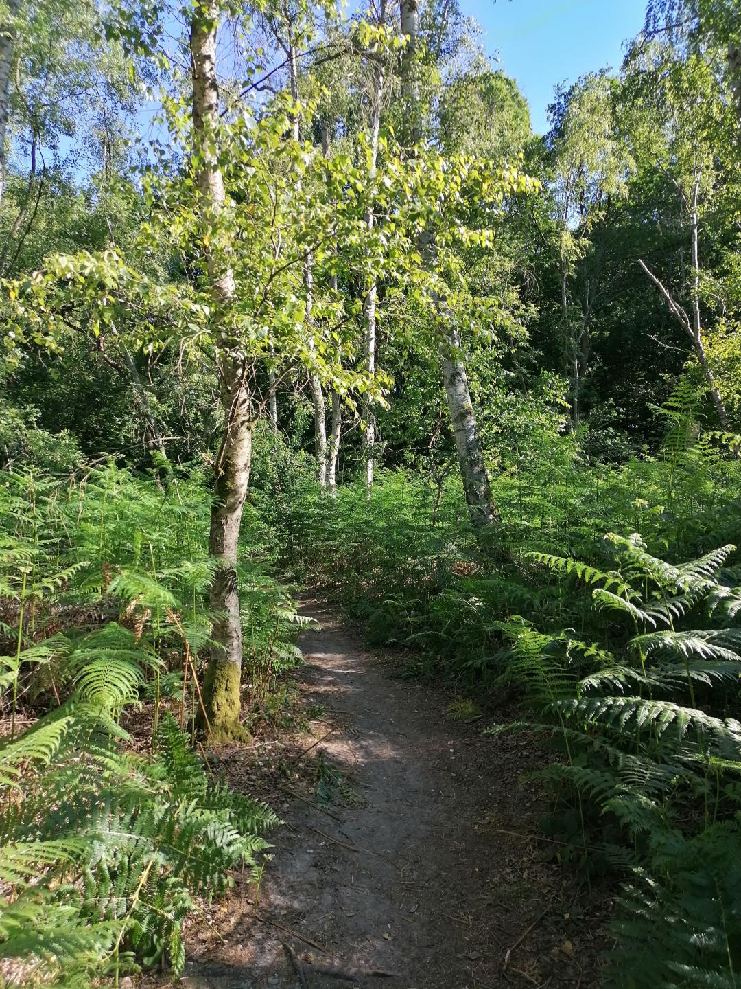 Praticabilité = difficile, encombrement latérale, sentier sur creusé, végétation importante, passage très étroit entre arbres et buissons.