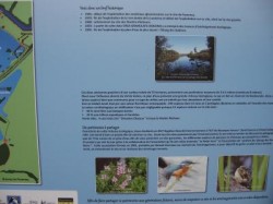 - Km 02,18 : Intersection avec l’ancienne voie ferrée (les rails sont démontés). Suivre le chemin entre les plans d’eau des Grands Gabions(2), jusqu’à Mersuay.