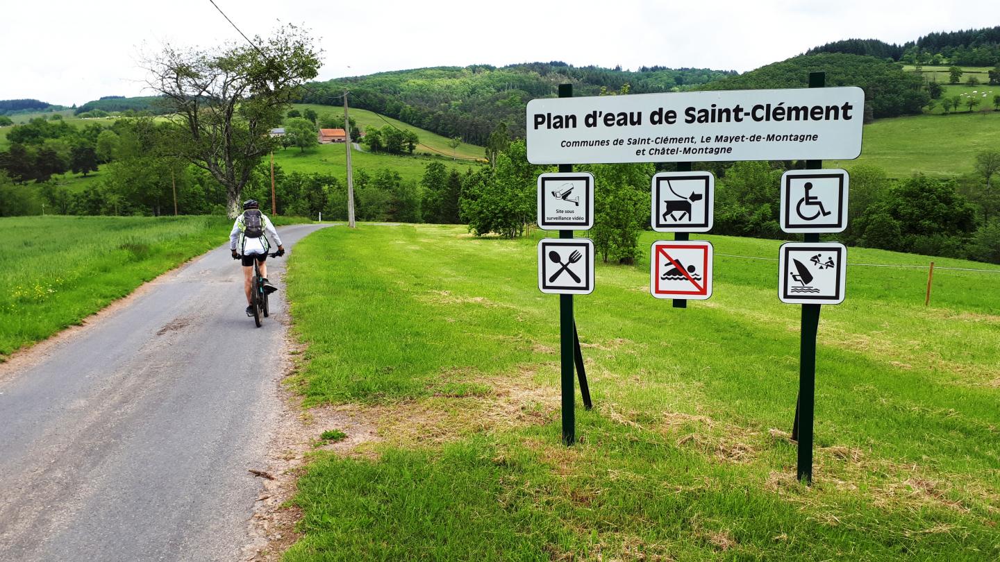 Nous avons fait une halte café croissant à Châtel-Montagne et la pause casse-croûte sur une table de pique-nique au bord du plan d’eau de Saint-Clément.