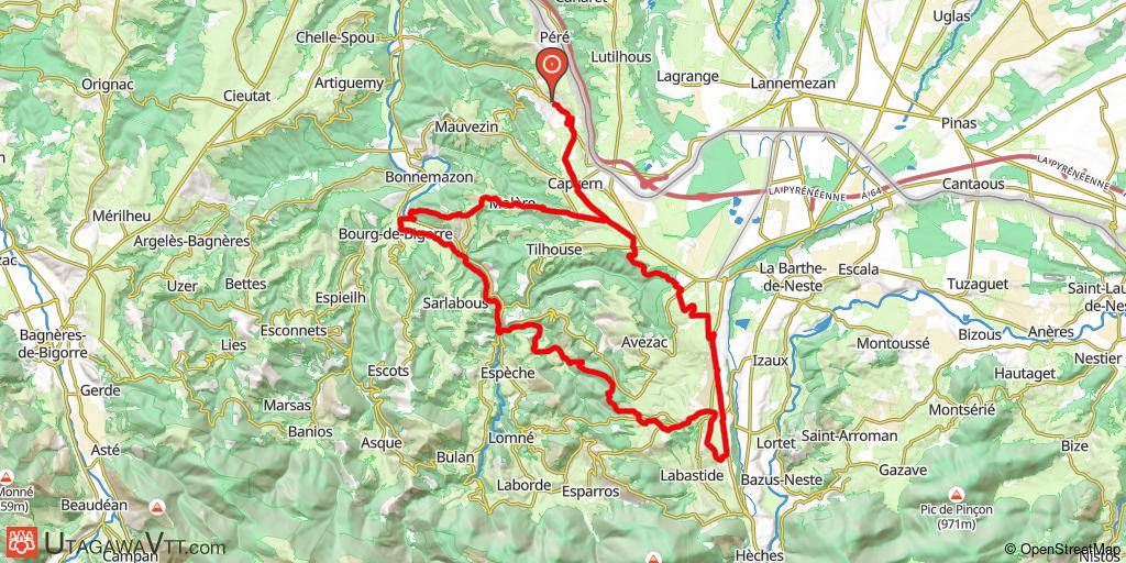 Mélange de deux circuits de Alain 65, le boss du VTT dans le secteur. Parcours plutôt roulant avec de beaux passages en forêt et passant par l'aire de pique-nique du moulin (pratique pour casser la croûte sur le chemin).