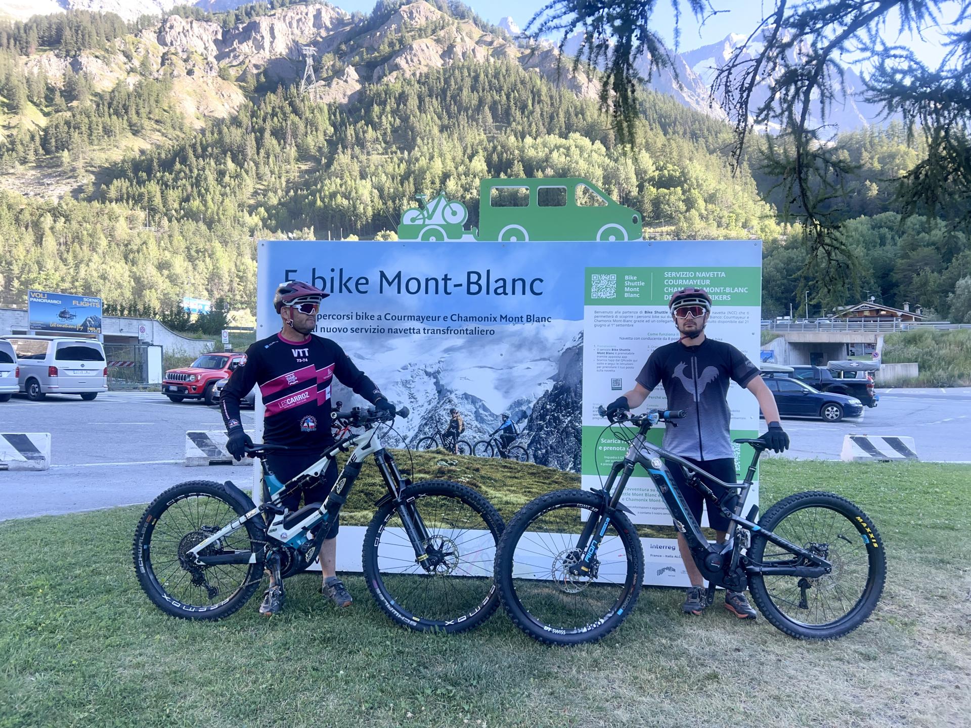 Un grand merci à E-Bike Mont Blanc qui nous donne la possibilité de traverser le Mont Blanc gratuitement avec nos VTT sous réservation avec leur application : https://www.courmayeurmontblanc.it/fr/e-bike-mont-blanc/