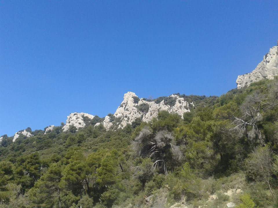 Départ sur la piste DFCI au niveau du domaine de Durban pour l'ascension quasiment jusqu'au col du Cairon puis début de la descente sur la droite correspondant au départ de la deuxième spéciale de l'enduro des Dentelles. Après, il faut suivre la trace ou les smileys bleus.