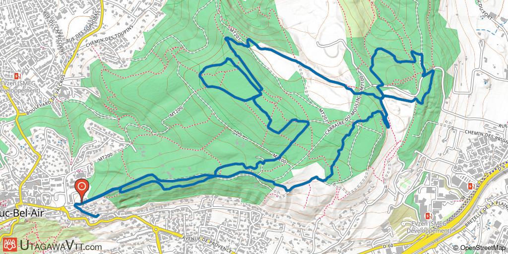 Boucle dans les bois de Bouc-Bel-Air qui enchaîne un maximum de singles sans se recouper. Plusieurs extensions sont possibles du côté de Luynes ou de Cabries par exemple si vous souhaitez faire une sortie qui dépasse les 1000 m de dénivelé.