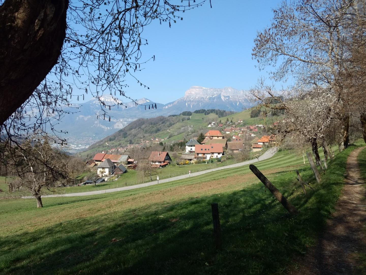 Vous resterez à gauche jusqu'à la première grange du Daret. Avant d'arriver à la grange, vous pourrez contempler la vallée du Grésivaudan avec en face de vous la Dent de Crolles sur le massif de la Chartreuse. Il est possible que vous trouviez des clôtures où sont parqués des moutons. Vous penserez à bien refermer derrière vous... Merci pour nos agriculteurs!