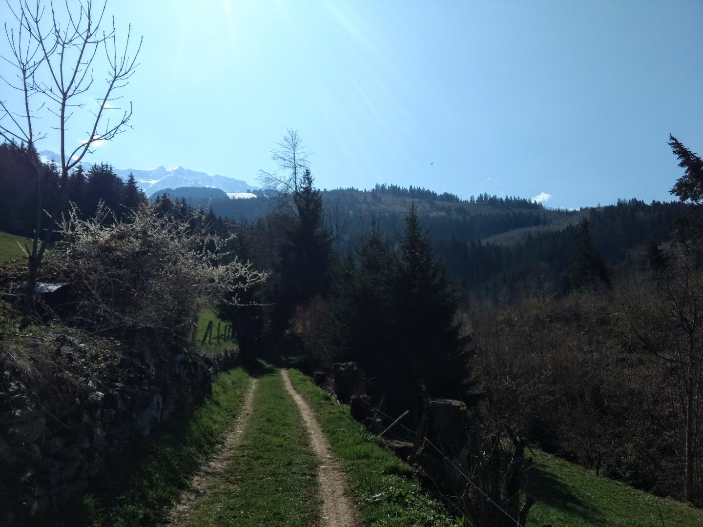 Attention, virage assez serré à gauche qui monte pour prendre un chemin qui dessert plusieurs granges. Vous continuerez bien tout doit sur 500 m (à gauche un chemin part pour Prapoutel).