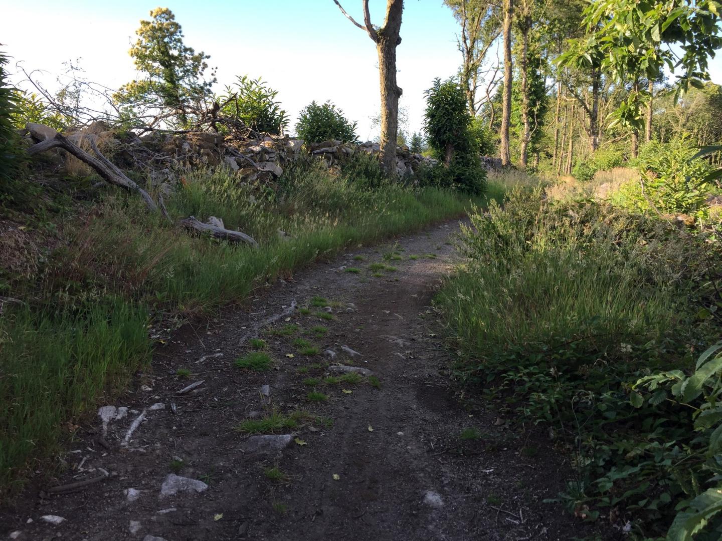 D = Vieux chemin entre murets, sentier quelquefois encombrés de cailloux, racines d'arbre, branche, rochers.