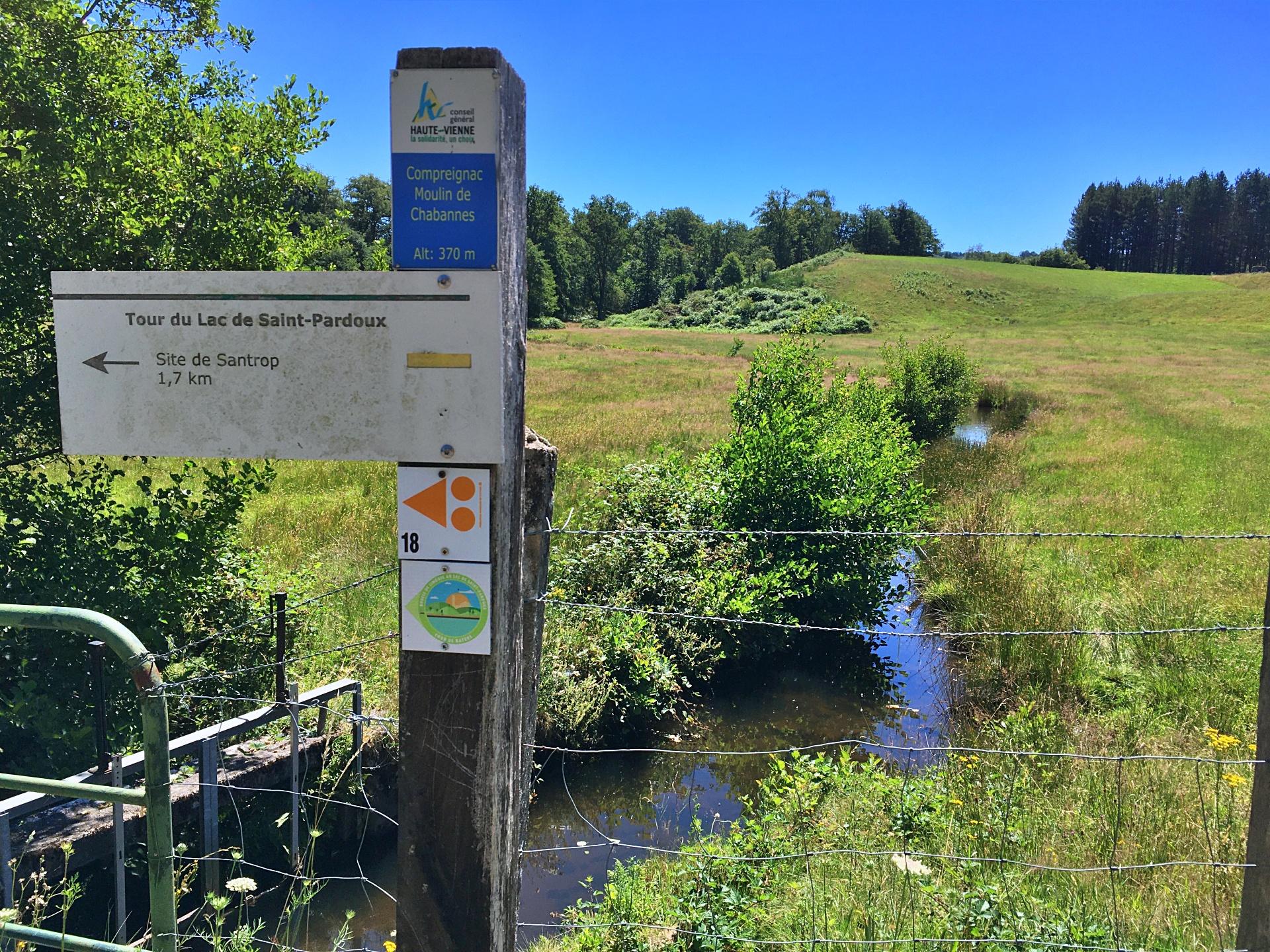 Comme son nom l'indique, ce circuit parcourt l'ensemble des berges du lac de Saint-Pardoux, à l'exception de la zone dite de la "route noyée" en direction du site de Chabannes (secteur fortement fréquenté par des randonneurs, promeneurs...). Le départ se fait depuis la Maison du Lac sur le site de Santrop. Vous trouverez aussi un rappel du départ depuis le site de la base de voile de Chabannes. La liaison se fait par la passerelle qui relie le site de Santrop et le site de Chabannes. Le balisage et le tracé sont effectués dans le sens anti-horaire.