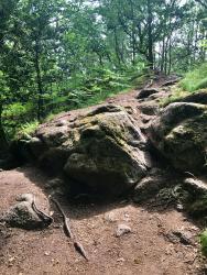 4 = En plus d'être étroit et sinueux, le sentier lui même présente des difficultés qui obligent à placer la roue dans quelques cm, de se positionner sur le vélo de manière précise, de savoir moduler son freinage pour passer lentement. On peut rencontrer des marches assez hautes qui nécessitent des capacités en franchissement, des épingles fermées, un terrain fuyant, une forte pente. C'est le niveau de beaucoup de vététistes qui n'aiment pas poser le pied et apprécient un certain engagement.
