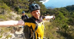 - On traverse la route, on porte le vélo par dessus un petit chaos rocheux, et c'est une petite piste en descente rapide vers Die.