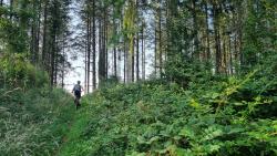 Praticabilité = Difficile, encombrement latéral, sentier surcreusé, végétation importante, passage très étroit entre arbres et buissons.