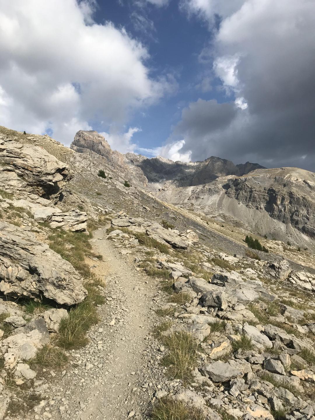 Une agréable piste pastorale (lisse et bien tracée) permet de rejoindre sans trop d’effort le parking (2280 m, 6,2 km, 1 h) situé à son terminus, juste avant la cabane des Couniets. C’est là que démarre le sentier évident à suivre qui s’élève régulièrement jusqu’à un premier col dominant le Val d’Escreins (2568 m ; portions cyclables en début de montée et sur la fin). Une sente pratiquement à flanc (ponctuellement exposée mais cyclable à 99 %) conduit alors au col de Serenne (2674 m, 10,4 km, 2 h).