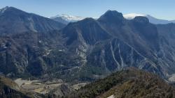 Retour dans un premier temps par la piste de montée, jusqu'à la barrière. A droite toute, on emprunte un étroit sentier (poussage sur 10 m) pour redescendre ensuite sur le village du Caire. Quelques grosses marches pierreuses au départ, mais très vite le sentier est très praticable jusqu'à une piste qui vous ramènera à la piste de montée.