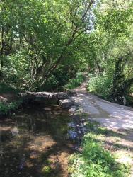 D = Vieux chemin entre murets, sentier quelquefois encombrés de cailloux, racines d'arbre, branche, rochers.