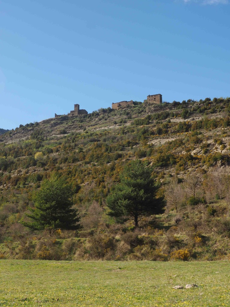 Au bout de 6 km, on laisse sur la gauche le bon sentier fléché Nocito (permettant de raccourcir la boucle en retrouvant plus bas une piste qui rejoint puis longe le cours du Guatizalema jusqu'au village). Une petite montée (parfaitement cyclable) fait alors remonter jusqu'au col Salillas (1 095 m), précédant la courte descente jusqu'à la ferme ruinée de Sescun (7,5 km depuis le départ). Laisser alors le sentier remontant sur la droite en direction de l'ermitage (tout aussi délabré) de Sescun, pour la piste desservant la ferme. On suit celle-ci et, à la bifurcation suivante (1 km plus loin environ), laisser la piste principale pour la piste secondaire gagnant le col et plateau herbeux de Paules (1 321 m). Le chemin devient plus étroit dans la descente qui débute et se transforme rapidement en un sentier monotrace venant apercevoir les falaises calcaires et orangées de Cienfuens. On rejoint plus bas le barrage sur le rio Flumen et l'on suit alors le sentier évident qui le longe en rive gauche, pierreux au départ puis plus facilement roulable dans la partie forestière précédant le retour sur la route, au niveau du panneau indiquant le départ de l'ascension du pico de Gabardiella par son versant nord. A noter que la remontée par cette route vient dominer un bout de gorge (estrechos de la Carruaca) se prêtant idéalement à l'initiation au canyonning... 2 secteurs de rocher calcaire sont également équipés dans ces mêmes parages, pour la phréatique de l'escalade libre (voies courtes, inférieures à 20 m de haut).