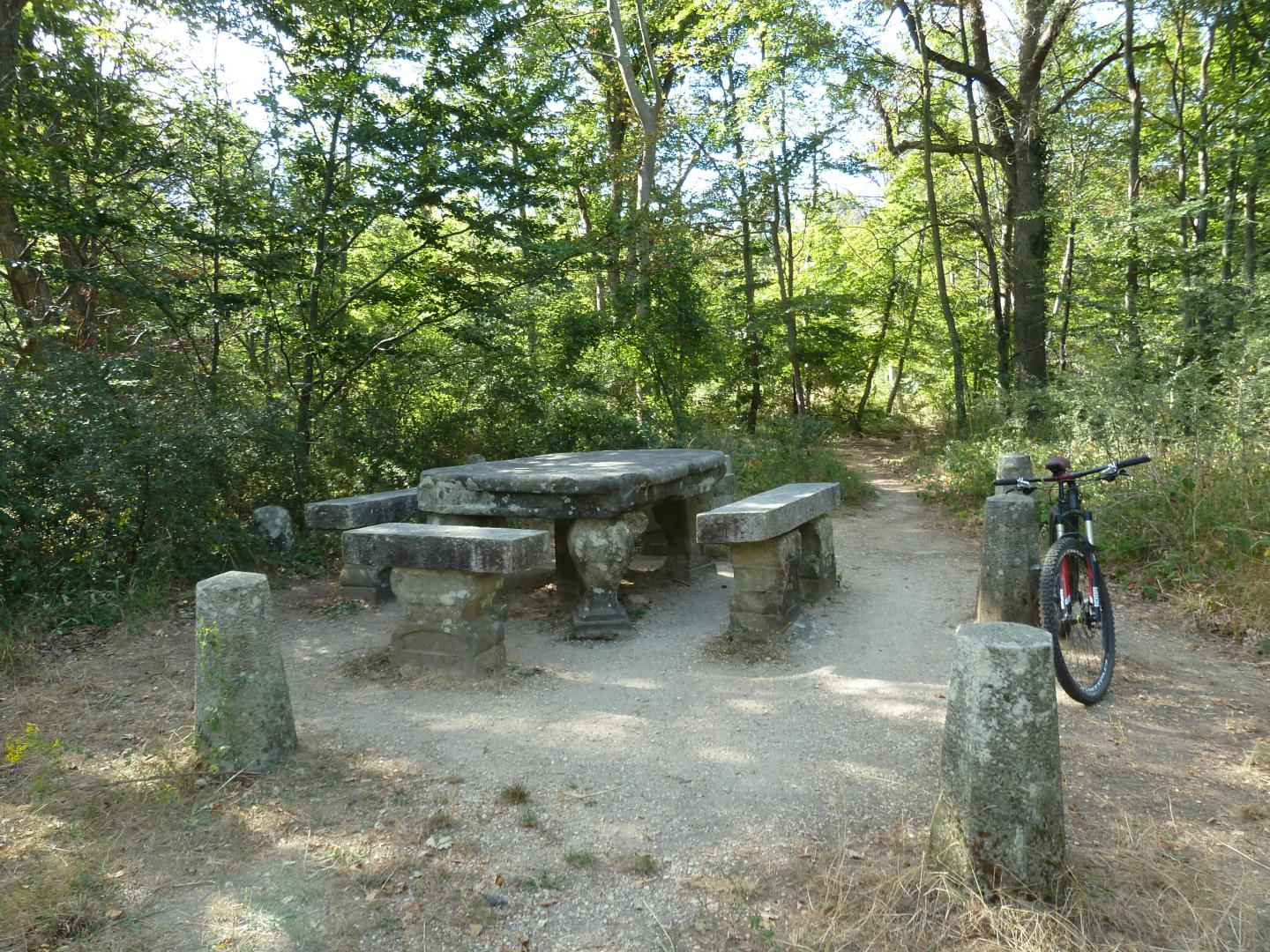 La première étape nous mène à la Tour Dénecourt. De là, nous allons suivre un single à travers le Rocher Cassepot jusqu'à la Butte Saint-Louis. La trace se confond presque tout le temps, dans ce secteur, avec le GR1E. Attention sur ce single, vous devrez franchir quatre passages grillagés. On arrive à passer le vélo même si cela semble difficile à première vue.