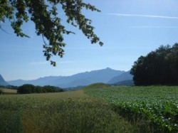 Ensuite après le Villard en montant vers Hauteville, le chemin est en train de se refermer... Il faut viser la clôture au fond du champ, puis à gauche après la clôture une espèce de chemin.