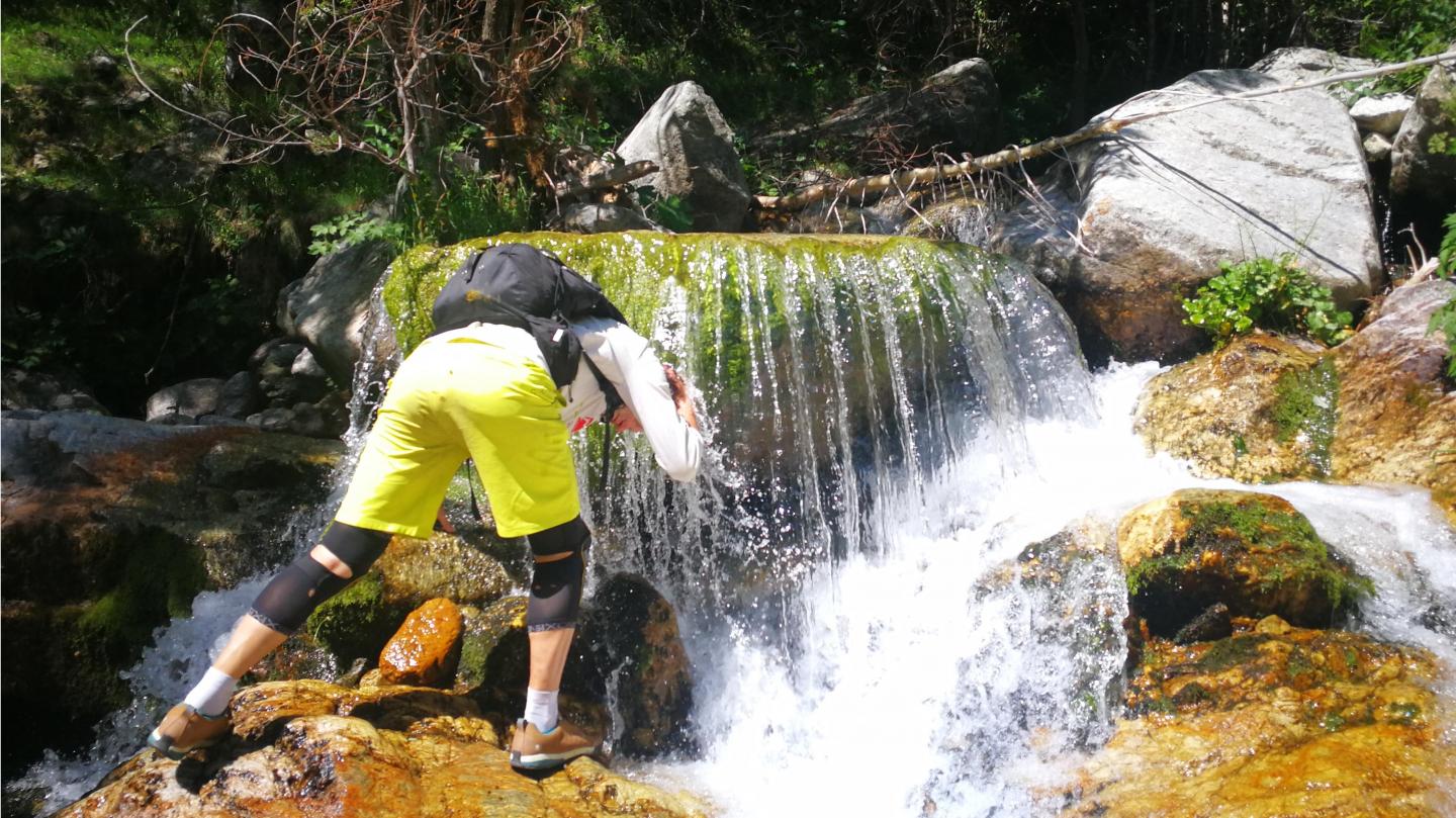 Km 28, alt 1614 m, nous prenons contact avec le beau torrent de Carbonner. Le monotrace longe le torrent jusqu'à la Balma des Donzelles.