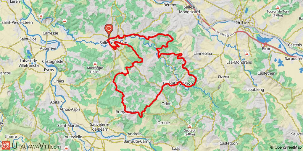 C'est un vrai challenge. 100 km avec près de 3000 m de dénivelé. Compilation d'un maximum de traces autour de Salies-de-Béarn, les moments de récupération ne sont pas nombreux. Une belle journée en perspective.