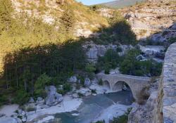 Le sentier serpente ensuite en sous-bois pour finalement plonger vers le Pont Roman que nous franchirons.
