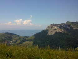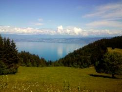 Départ de Bernex. Montée par une petite route et un peu de sentier jusqu'au Mont Bénand. Ensuite, du col de Creusaz, on gagne le haut d'une belle descente sur Trossy. Ensuite, on atteint l'altitude de 1400 m par une montée globalement roulante. De Pré Richard, poussage de 10 minutes pour atteindre une crête que l'on suit jusqu'au col des Boeufs. Ensuite 10 minutes de poussage nous amènent 30 mètres sous le Mont Baron. Descente par du sentier qui "tabasse" un peu (passages de vaches) jusqu'au Petit Chesnay. Une descente sur piste suit et permet d'arriver au pont sur la rivière l'Ugine que l'on va suivre par un joli sentier. Retour à Bernex.