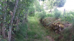 Praticabilité = Difficile, encombrement latéral, sentier surcreusé, végétation importante, passage très étroit entre arbres et buissons.