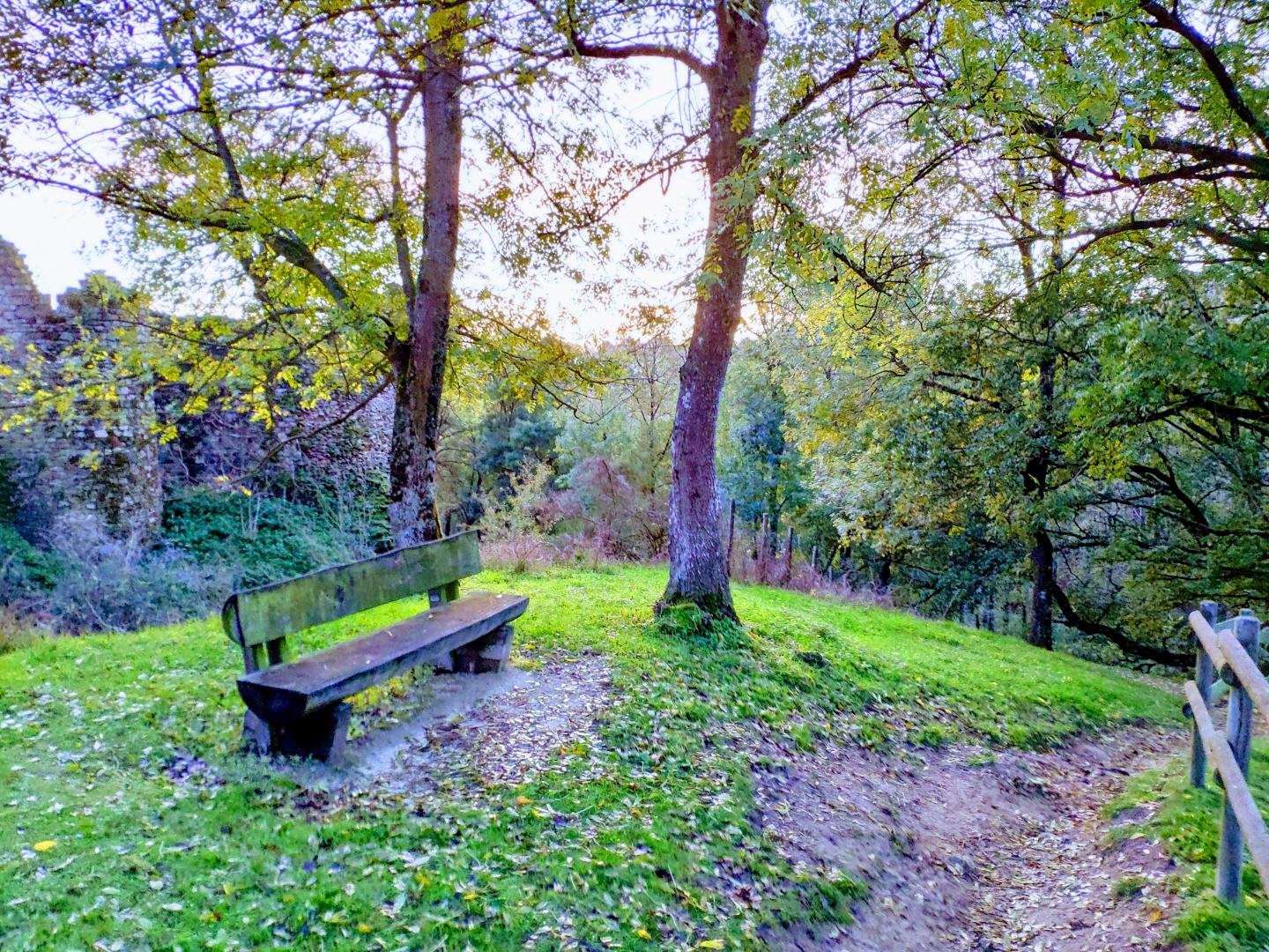 D = Vieux chemin entre murets, sentier quelquefois encombrés de cailloux, racines d'arbre, branche, rochers.