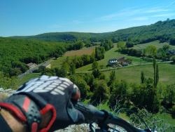 Boucle au départ du hameau d'Aurimont sur la commune de Salviac. Petit passage au dolmen de Libre. Descente engagée et technique, chemin entouré de murs de pierre très jolis, chemin en sous-bois très agréable en automne. Passage à côté de l'Abbaye Nouvelle pour sauter sur l'autre colline, découverte de très belles maisons dans des hameaux isolés.