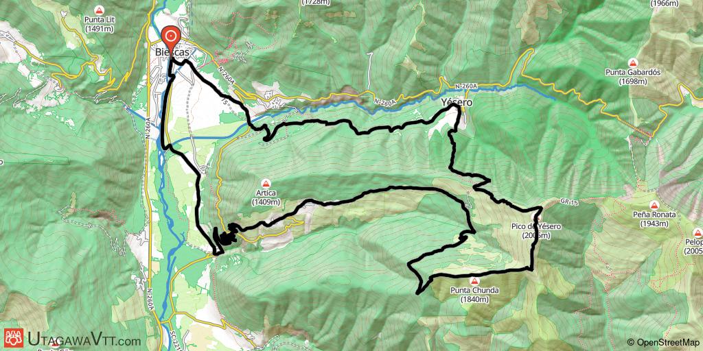 C'est l'un des meilleurs circuits de la région, du fait de sa hauteur, de sa vue exceptionnelle et des endroits traversés à la montée comme à la descente. Le panorama qu'offre ce site privilégié ne laissera personne indifférent, avec une vue à 360º sur Serrablo, la Sierra de la Partacua, le Pic du Midi mais également la brèche de Roland. De là-haut, on amorcera une descente inoubliable, d'abord par un sentier d'alpage, puis en sous-bois jusqu'à Yésero, pour continuer ensuite sur Biescas par les pistes et sentiers du bike-park de Gavín. Cette descente est superbe, avec quelques sections un poil technique mais surtout un plaisir de rouler à VTT sur ces singles magnifiques.