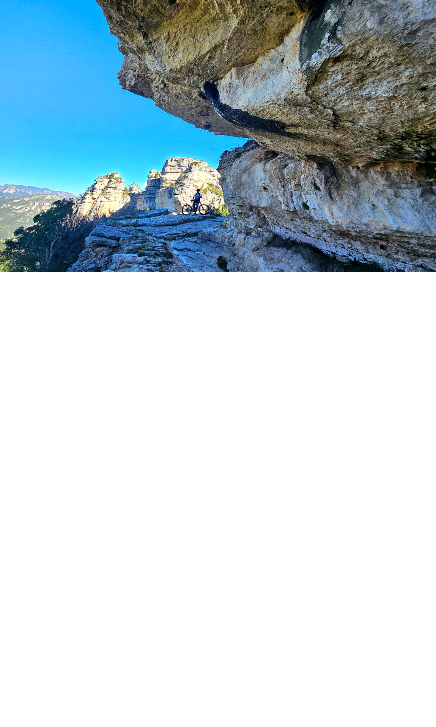 C'est parti pour la magnifique descente du Portell de l'Infern alternant des portions roulantes et d'autres empierrées avec mini marches (attention aux OTB) et exposition variable. Une certaine habitude de ces chemins cahotiques est nécessaire pour pleinement en profiter. De nombreuses pauses seront bienvenues pour certains afin de souffler et d'admirer le remarquable paysage environnant. Retour tranquille sur le barrage avec la banane, j'espère.