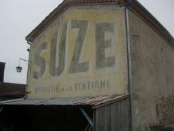 Km 8, la première boucle est finie, il faut prendre à gauche la grande route. Elle monte vers l'ancienne publicité Suze peinte sur la lande.