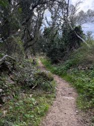 D = Vieux chemin entre murets, sentier quelquefois encombrés de cailloux, racines d'arbre, branche, rochers.