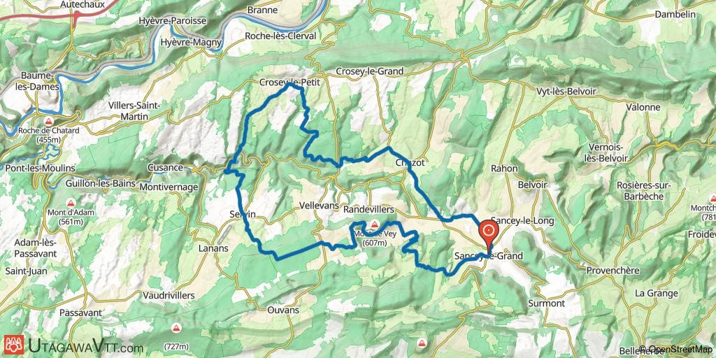 Départ possible de Sancey, Chazot, Crosey-le-Petit, ou Servin.