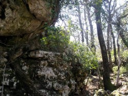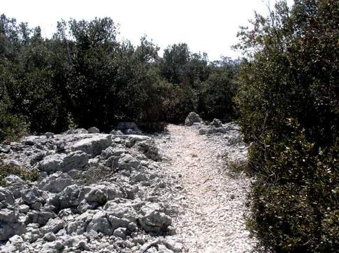 D = Vieux chemin entre murets, sentier quelquefois encombrés de cailloux, racines d'arbre, branche, rochers.