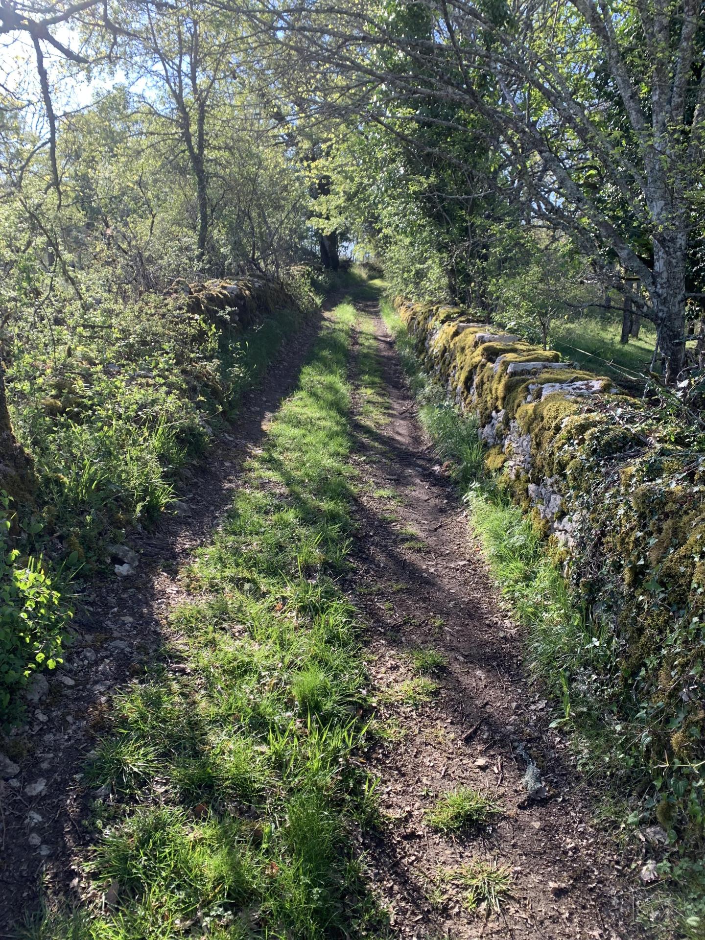 D = Vieux chemin entre murets, sentier quelquefois encombrés de cailloux, racines d'arbre, branche, rochers.