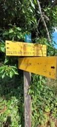Praticabilité = Difficile, encombrement latéral, sentier surcreusé, végétation importante, passage très étroit entre arbres et buissons.