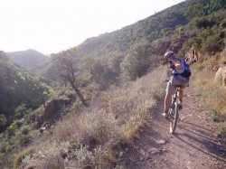 3 = Le sentier se fait étroit (30cm) et plus sinueux, mais toujours dénué de gros obstacles nécessitant un gros ralentissement. Le positionnement sur le vélo doit être plus précis : pied en bas extérieur dans les virages, aisance dans les épingles, passage en arrière du vélo dans les zones plus raides. C'est le niveau de la grande majorité des pratiquants réguliers. Sur le grand parcours de n'importe quelle randonnée organisée, on voit surtout des vététistes de ce niveau.