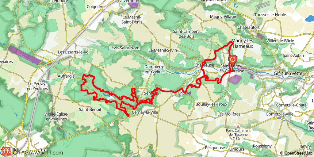 C'est une belle balade à faire de préférence lors des beaux jours de printemps et d'été, qui se passe pour les trois quarts en forêt. Lors de cet itinéraire, nous sommes amenés à découvrir les principales vallées entourant Chevreuse et sa très belle région. C'est un parcours très varié, entre single tracks et roulant, grosses descentes et zones techniques, qui nous fait découvrir les paysages variés des différents bois entre Voisin-le-Bretonneux et Cernay-la-Ville.